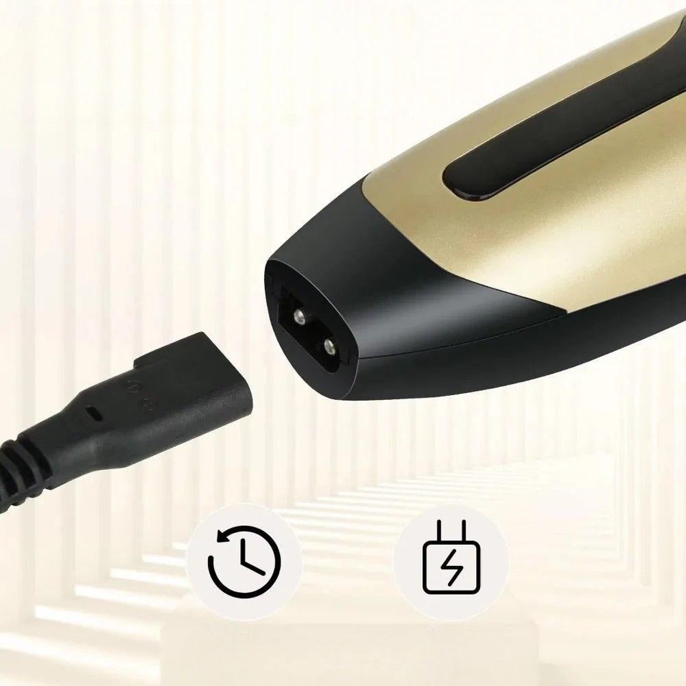 - Oplaadbare batterij: De 1200mAh batterij biedt tot 120 minuten gebruikstijd, voldoende voor een volledige trimbeurt.